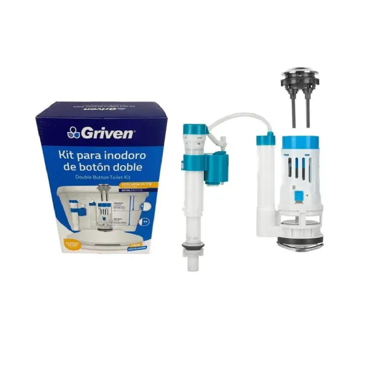 La Kit de Inodoro de Botón Doble – Griven (A367‑MP010) es un herraje de reemplazo para tanques de inodoro, fabricado en ABS con acabado resistente, que incluye válvula de descarga dual de 3″, válvula de llenado, botón doble de 38 mm, flotador, anclaje en U y varillas. Permite un ahorro de agua mediante descargas ajustables para sólidos (completa) y líquidos (media), instalándose fácilmente en la mayoría de modelos Griven compatibles. Su sistema de ajuste preciso garantiza eficiencia en baños residenciales y comerciales.